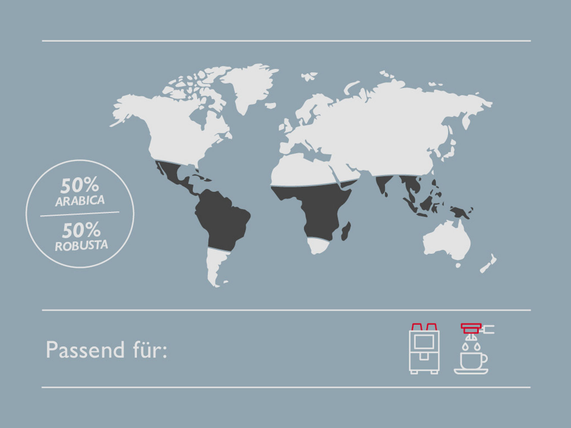 Eine weiche Mischung aus fein ausgewählten Arabica- und Robusta-Bohnen, die überzeugend und überraschend ausgewogen ist. Ausgeprägte Noten von Haselnuss, Limette und roter Johannisbeere werden in Ihrer Tasse glänzen. Genießen Sie den weichen, besonders fruchtigen und dennoch eleganten Geschmack und die samtig weiche Textur. Das unabhängige FAIRTRADE-Siegel gibt Ihnen die Gewissheit, dass die internationalen Standards für fairen Handel erfüllt sind, so dass Sie diesen wunderbaren Espresso mit einem gutem Gewissen genießen können.