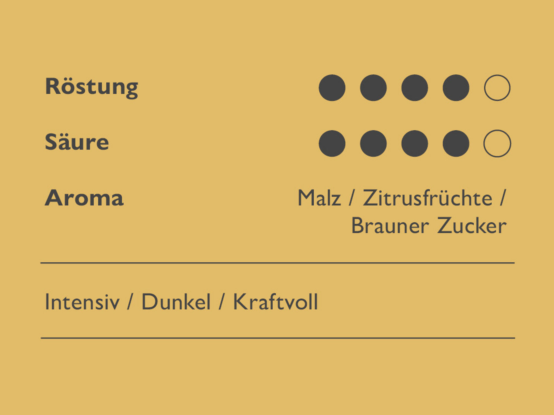 Am kraftvoll-würzigen Geschmack erkennt der Kaffeekenner, dass die Bohnen im Hochland reifen. Die dunkle Röstung liefert ein malzig-spritziges Aroma, der runde, ausgewogene Körper begeistert. Alle, die einen kräftigen Café Crème oder einen gehaltvollen Espresso mögen, könnten unserem „Rassigen" verfallen ...