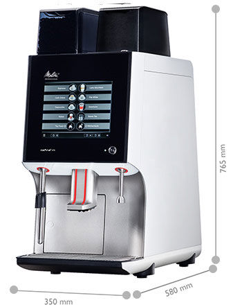 Enjoy the drink - and the sight: refined aluminium housing, 10.4" touch display, height-adjustable spout and all the options for the quick preparation of coffee, cocoa and tea specialities.