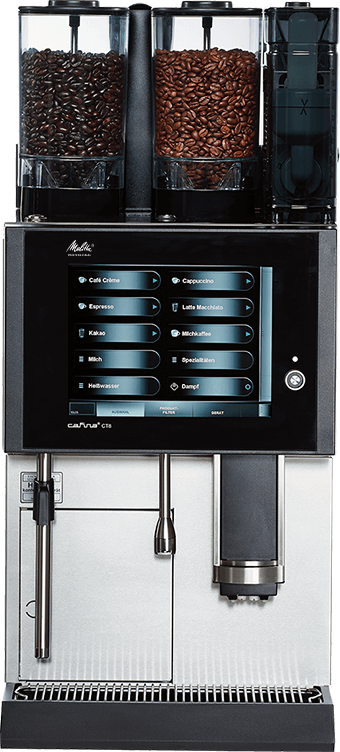 You are ideally equipped for continuous operation and demand peaks with the Melitta® Cafina® CT8 fully automatic machine. It masters special requirements in terms of performance, ease of use, variety of drinks and quality in the cup without frills in the robust stainless steel design.
